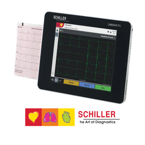 Electrocardiógrafo de 12 canales, pantalla multitáctil de 8". La impresora térmica de alta precisión (8 puntos/mm).En caso de inversión de los electrodos aparecen inmediatamente advertencias sobre los electrodos mal colocados antes de la adquisición del ECG.