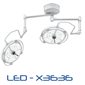Lámpara de cirugía cialítica. Luminancia de 160.000 lux por satélite. Sistema de control digital en cada satélite. Lámpara de Luz Fria. Rotación de 360°. Luz LED.
