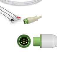 Este cable ECG de una sola pieza es para uso con los siguientes monitores ECG:Sirecust Series 400, 500, 600, 700, 900, 1200, Sirecust 341, 610, 620, 630, 720, 722, 730, 732, 900, 960, 961, 1260, 1281, 1801, 400, 500 ECG Monitor, Modulo Polymed y Modulbox Sirem
